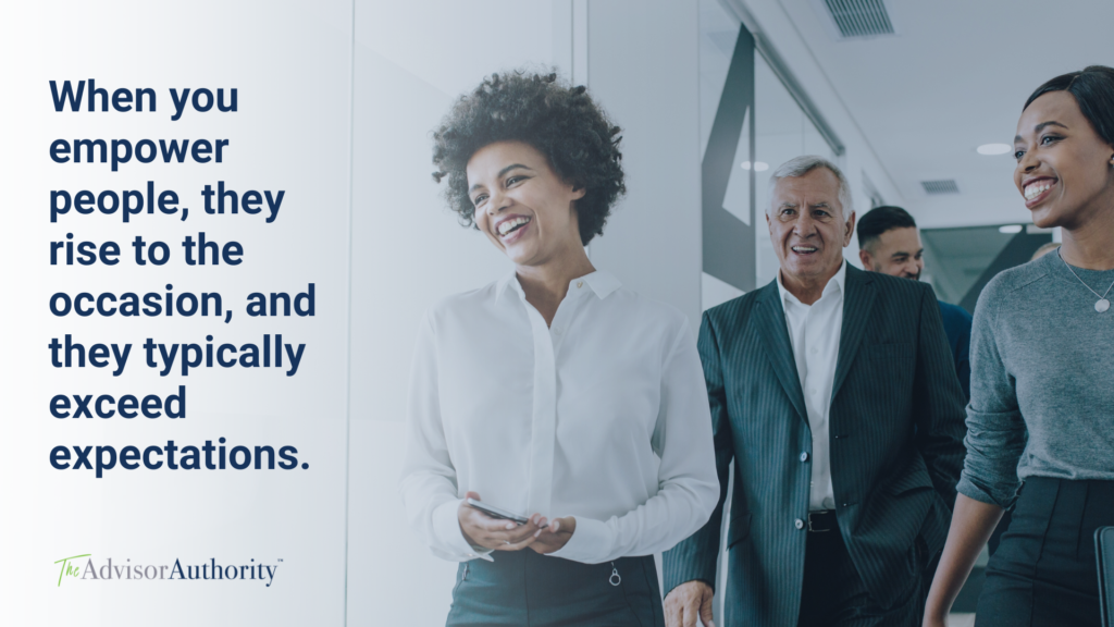 I’ve often found that when you empower people, they rise to the occasion, and they typically exceed expectations. Keeping this in mind will serve you well on your journey to moving upmarket.