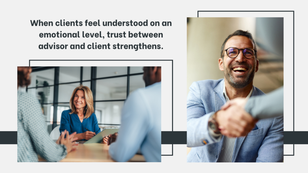 - Build deeper trust and relationships: When clients feel understood on an emotional level, trust between advisor and client strengthens. They see you not just as someone managing their portfolio but as a true partner who comprehends their unique needs and goals.