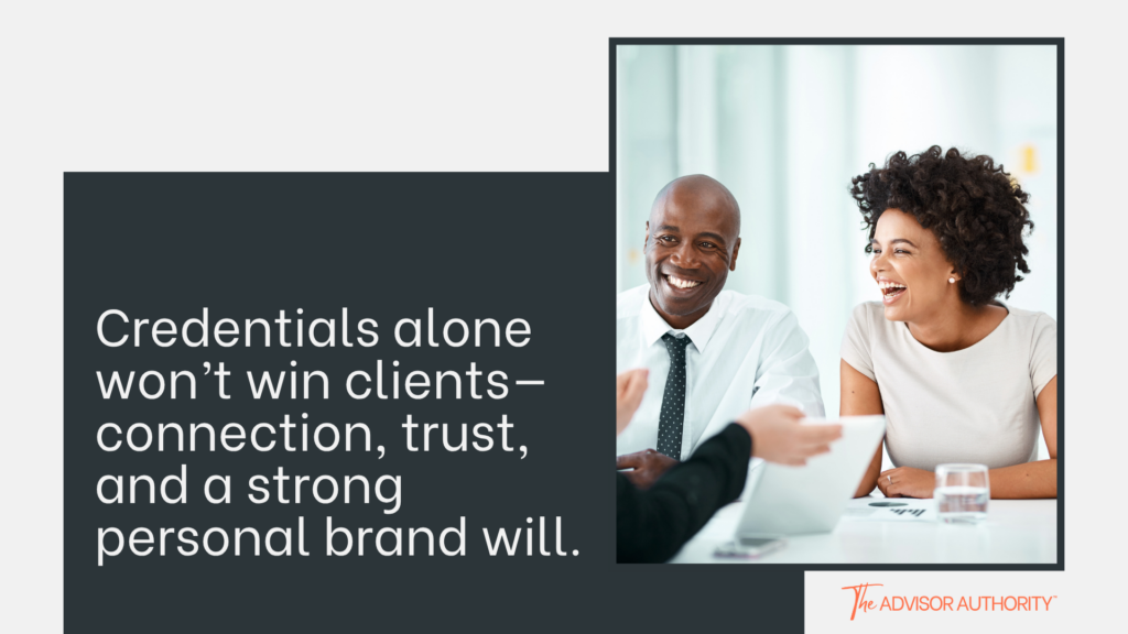 Many financial advisors assume that their certifications, fiduciary status, and firm reputation are enough to set them apart. Credentials alone won’t win clients—connection, trust, and a strong personal brand will.